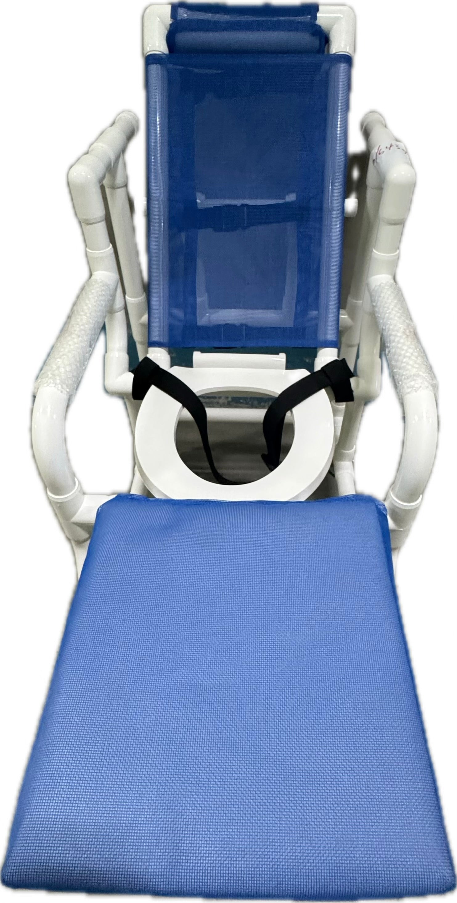 Chair shown with pail and leg extension upgrades. For chair with standard commode pail – see Model #390