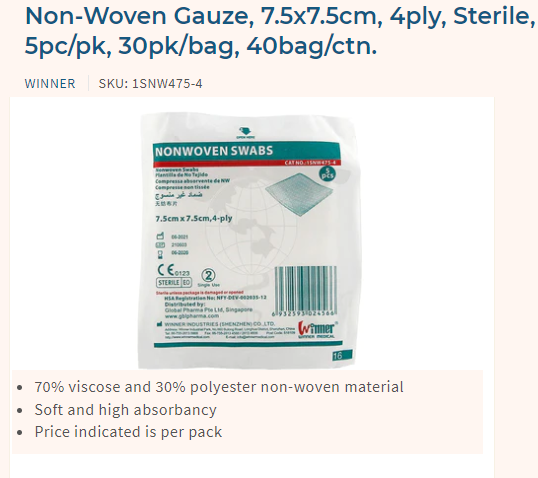 Non-Woven Gauze 7.5x7.5cm, 4ply, Sterile, 5pc/pk