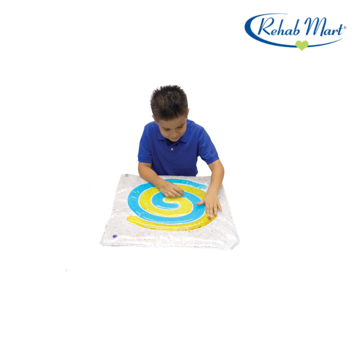 This gel pad allows the user to guide the plastic disk around the swirl providing tactile and visual stimulation.