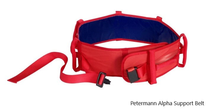 The Support Belt has a number of grips so the carer can control the flow of movement, for example when transferring a patient to a chair, and support insecure patients. The Support Belt is also a reliable aid for walking. Unsteady patients, fore xample patients with circulation disorders, can be held properly without having to grab their arms.