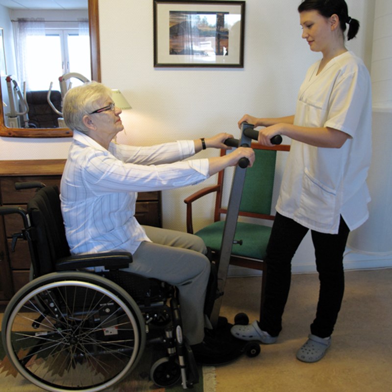 TurnSafe2 is an ergonomic and easy-to-use aid for sit-to-stand and transfers with turning. TurnSafe2 has been developed in close cooperation with medical personnel and users and therefore it efficently looks out for the interests of both parties.