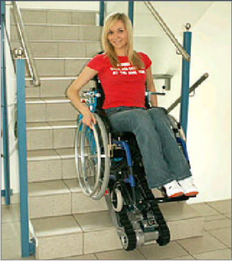 Stairmax can be purchased complete with a wheelchair. Alternatively, the user may choose to use his own active wheelchair, which needs a small adapation for attachment to the frame of Stairmax.
